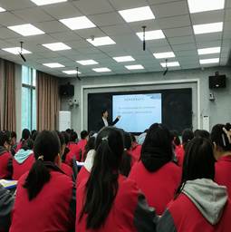早上八点娄底市第一职业中学副校长成选文亲临现场,学校教务科领导,和44118太阳成城集团文学院实习队带队老师周良娥、易宋江,合同各班语文指导老师和评委悉数到场,开启最后三位实习老师的教学比武课。