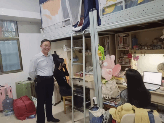 为进一步做好学生管理工作,营造洁净舒适的生活环境,5月31日,党总支书记尹钟宏,辅导员唐久乐老师,胡艳老师一同走进23级部分寝室,开展了“三联系”下寝活动。