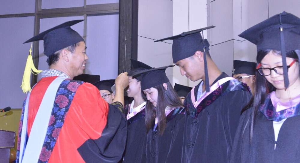 作为典礼最隆重的一个环节——拨穗仪式,系主任李夫泽教授身穿导师服微笑着为毕业生代表逐一拨穗。寄语2015届毕业生“每个人都有那么两下子,请不要自傲;每个人都只有那么两下子,请不要自悲;不卑不亢,微笑面对人生。”