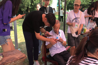 “老爷爷,你是跟着孩子一起来报道的吗?”工作人员在迎新点外看到一位年迈的老人,于是上前询问。“我孙女是来报道的……”,“那您的孙女人在哪里啊?”“……”,一番对话下来,工作人员听懂的只有这一句话,老人除了“孙女开学报道”之外一无所知。就在这时,工作人员在老爷爷身上发现了一张挂牌,上面写着家人的联系方式,工作人员帮助老爷爷拨打电话,顺利找到了家人。“我爷爷是一位老党员,年纪大了不太清楚事情,真是谢谢你们替爷爷联系我!”这位老爷爷的孙女是来自外国语学院的19级新生,她对工作人员这样感谢道。