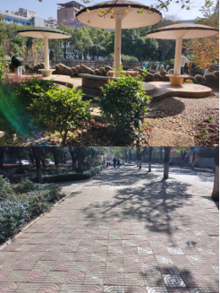 无课时间,各班负责打扫的同学带上了打扫工具,相约于这里。虽已入冬,毓师园的树木依旧枝繁叶茂,阳光有的撒在叶子上,绿油油的。有的透过叶缝印在地上,成了一块块光斑,好像冬日的仙女遗留下来的脚印。望着这美丽的景色,同学们心情愉悦,打扫得更加起劲了,有的勾着腰把枯枝落叶一扫而光,有的在说笑声中捡起白色垃圾,就连小路上的泥土也通通扫回了它们本应该呆的地方。