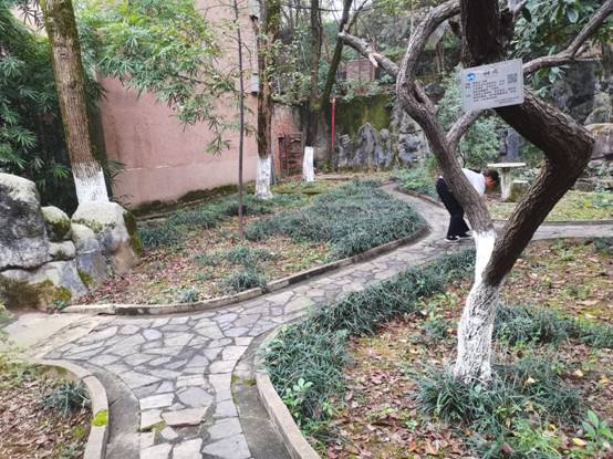 活动已有一月有余,在同学们的积极参与下,花田始终干净整洁。映入眼帘的是肆意盎然的兰草,是色彩斑斓的樟叶,是缄默的石亭。樟叶虽美,但落在石板路上,会驱除石板路的静;枯枝别有一种姿态,但落在草丛中,会打扰草丛的净。