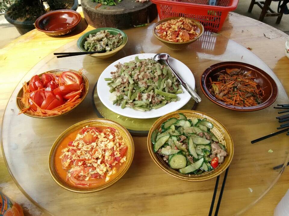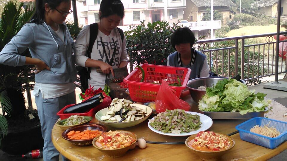 在活动中全体团干按各个部门干事人数自发分为五个小组,每组都由不同部门的干事组成。早上八点大家集体在海园广场集合,然后集体出发比着赛争相到达目的地,接着各小组的组长带领各位组员将食材准备好,最后各个小组相互合作将青色的红色的食材汇划成一道道美食。整个活动在温馨与欢快的气氛中进行,大家在欢声笑语中品尝着菜肴,增进着感情。整个活动中组员们都积极参与,让我们每一个干事都领悟到了团结协作的重要性,增强了大家的团队合作意识。