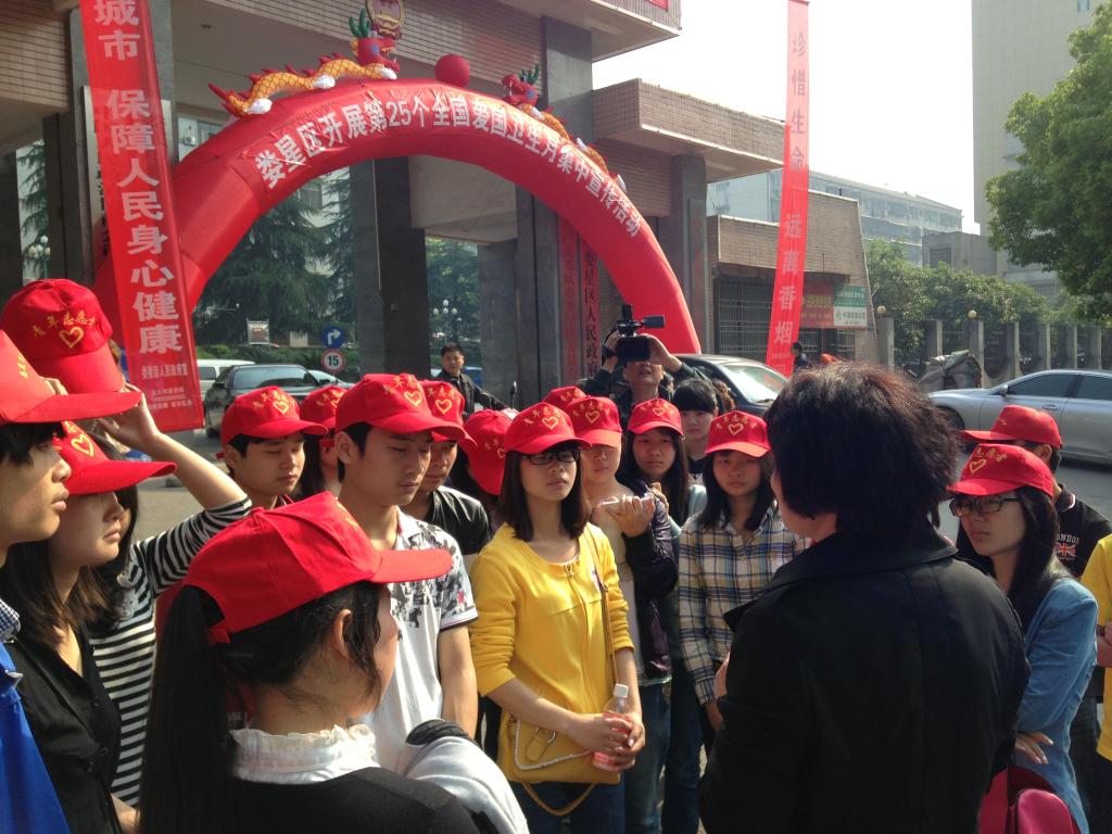 学生志愿者于上午九点开始宣传活动,15名志愿者分为4组,分别于长青街不同路段向来往市民分发和讲解“创建国家卫生城市”宣传资料。志愿者们对于如何参与“创建国家卫生城市”、如何除四害、如何预防食物中毒等相关问题向市民进行详细讲解。志愿者们对此次活动投入极大的精力及热情,来往市民也对活动的进行给予了极大的支持。