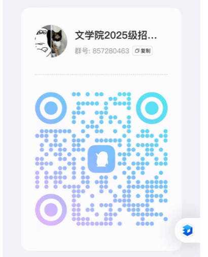 因招生宣传需要,文学院现设立招生宣传群,欢迎考生及家长入群咨询,群号:857280463