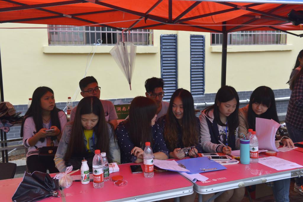 2015年9月13日中文系进行了迎新活动。学长学姐们在各宿舍摆点迎新,热情迎接15级新生到来。学弟学妹们在学长学姐的帮助下顺利完成报名工作。