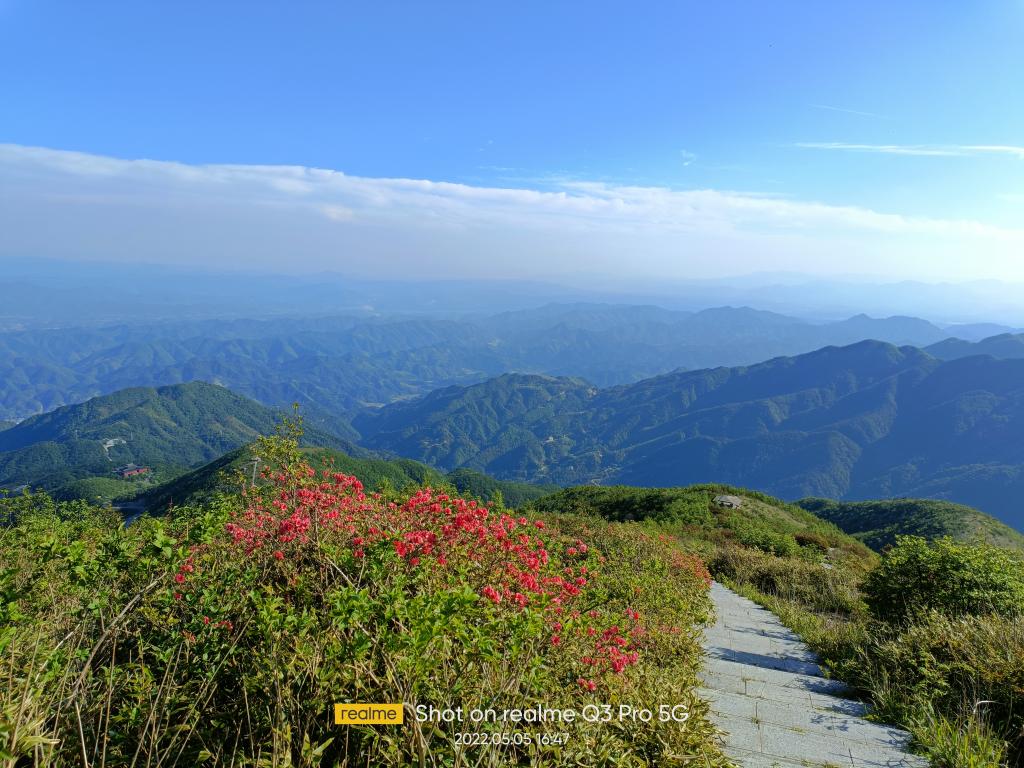5日,两批同学在大熊山汇合,师生共同合影留念。下午两点,同学们以班级为单位开始登山。首先到达熊山古寺。古寺里的情侣树、中华银杏王、摇钱树等千年古树蕴含着深厚的文化底蕴,深深吸引着同学们。同学们环绕大树且唱且跳,留下自己内心深处最美好的愿望。五月的十里杜鹃,只有山顶的几抹红,有着“万绿丛中一点红”的耀眼。大熊山顶,晴空幽冥。远处,连绵的山峦与蓝天白云交相呼应,诗意盎然。登高望远,同学们在挑战自我的同时,更有了“会当凌绝顶,一览众山小”的胸怀和眼界。