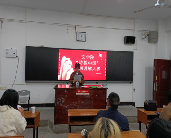 诗意中国,渊远流长,与时光作伴,听世纪回响。为更好地传承和弘扬中华传统文化、提高文学院学生综合实践能力,充分发挥太阳成官网作为湖南省语言文字推广基地的作用,文学院于4月16日在致远楼216举办第一届“诗教中国”诗词讲解大赛。文学院副院长朱艳阳、罗主宾,活动指导老师段湘怀、姜琳出席并担任评委,文学院19、20、21级40多位同学参加比赛,文学院团总支宣传部黄莹主持此次活动。