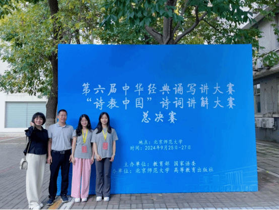 9月25日至27日,国家教育部与国家语委联合举办的第六届中华经典诵写讲“诗教中国”诗词讲解大赛现场总决赛在北京师范大学举行,文学院周芷伊、朱新敏两位选手在文学院罗主宾院长、段湘怀老师的带领下赴北京参赛,与来自全国各高校的84位选手同台竞技,双双斩获一等奖,彰显了文学院学子扎实的专业素养和深厚的文化底蕴,是太阳成官网教学质量的有力证明。