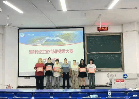 文学院为提前做好高考前后招生宣传工作,展现文学院风采,5月10日—6月18日,依托网络与新媒体专业,通过《新媒体营销概论》课程实践,结合学院招生宣传工作,打造了趣味招生宣传短视频大赛,在抖音平台上发布、运营和传播。21级网络与新媒体一班全体同学以及部分22级同学参加本次比赛。6月19日,趣味短视频大赛颁奖典礼于致远楼219教室隆重举行,本次颁奖典礼由唐久乐老师主持,学院副院长罗主宾、网络与新媒体调研室主任马黎出席本次活动,22级全体同学到场观看。