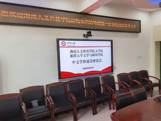 9月27日,在副校长刘铁峰教授的带领下,文学院院长倪正芳、副院长罗主宾、工会主席彭龙健、办公室主任李佳等一行五人赴湘潭大学文学与新闻学院开展学习交流活动。湘潭大学党委委员、组织部部长邓国军,文学与新闻学院院长雷磊,院党委书记资义平,副院长宋德发、田华、刘晓丽,副书记周鹏飞,院长助理郭明浩等人参加了相关座谈。