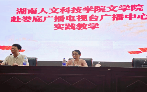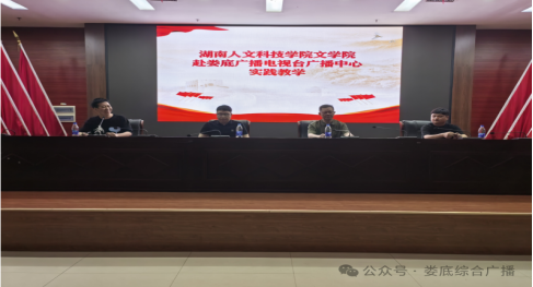 为加深对媒体行业发展现状的了解,激发同学们对传统媒体运营的兴趣,近日,文学院2022级、2023级网络与新媒体专业学生赴娄底市广播电视台广播中心参与以“新时代融媒体专业广播节目的策划与运用”为主题的实践教学活动。44118太阳成城集团文学院党总支书记尹钟宏、专业负责人马藜教授、娄底市广播电视台广播中心党支部书记、主任伍超等出席活动并讲话。