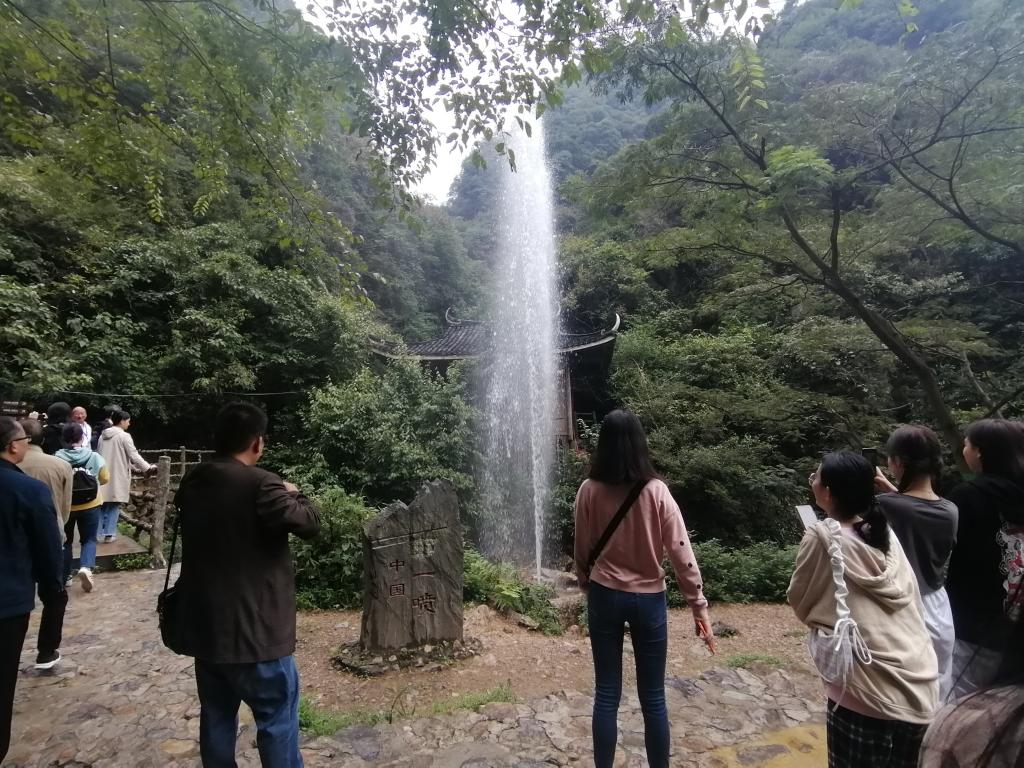 24日早晨,一碗滚烫而色泽鲜亮的米粉拉开了第二天行程的序幕,师生们赴三联峒冰泉谷进行采风。冰泉谷中三步一瀑、五步一潭,溪水清澈见底,更有“天下第一喷”著称的喊泉。谷内瀑布高余百米,水在池中激起圈圈涟漪,宛如童话世界。