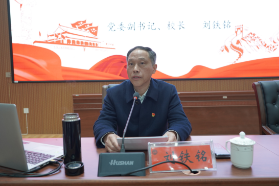 党委副书记、校长刘铁铭以“学习二十大 奋进新征程 解放思想 敢于担当 推进学校高质量发展”为主题,带领大家学习了党的二十大报告的基本框架、主要内容,又结合学校2023年主要工作,帮助大家认清了学校面临的困难和挑战,号召大家勇于担当,团结奋进破解学校发展难题。