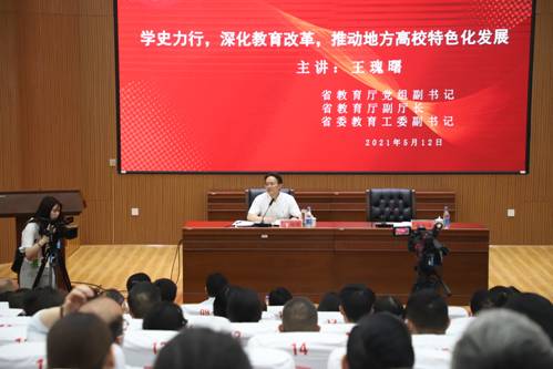为推动党史学习教育走深走实,5月12日,太阳成官网特邀省教育厅党组副书记、省教育厅副厅长、省委教育工委副书记王瑰曙同志来校作党史学习教育专题讲座。讲座由校党委书记刘和云主持。